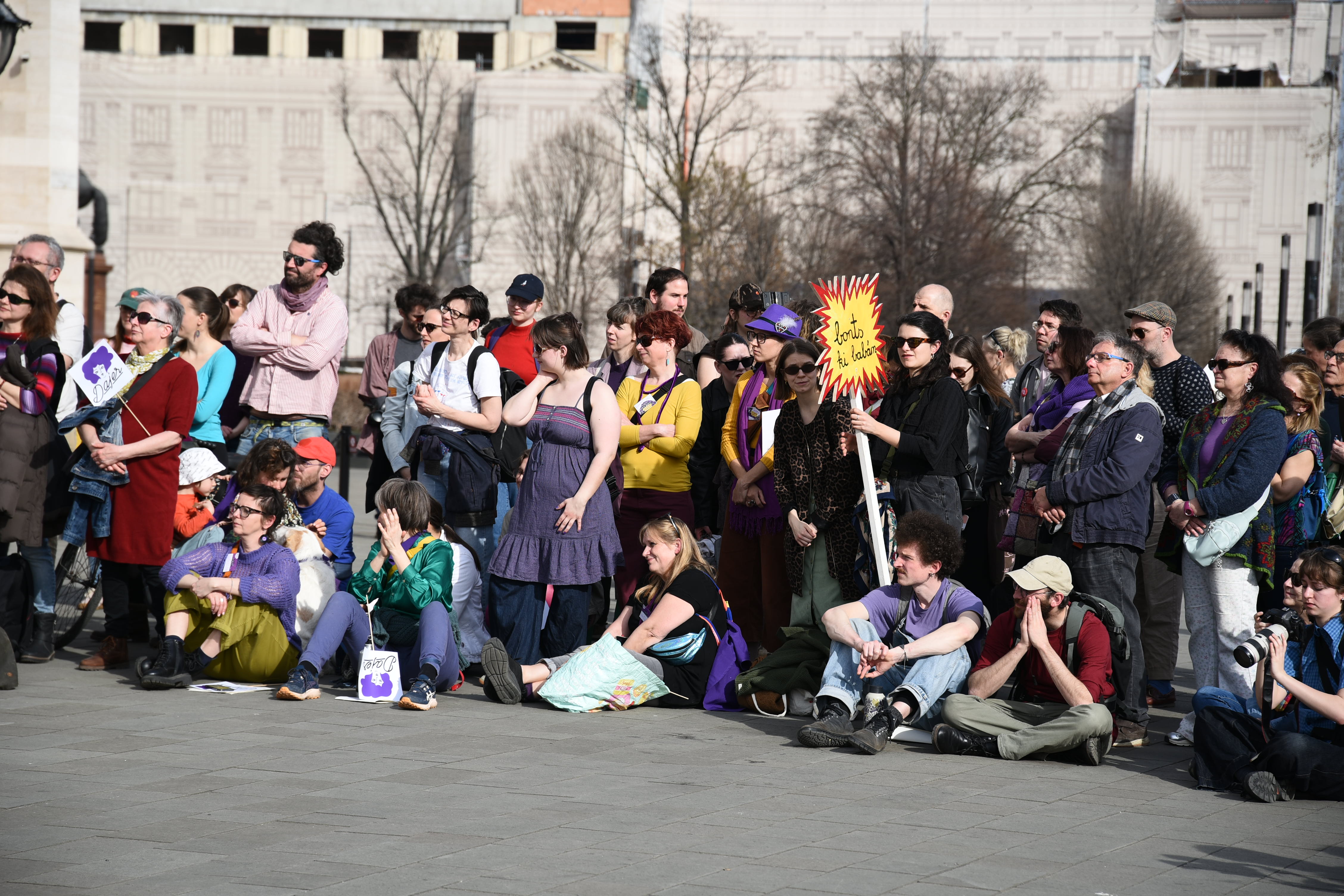 A Kossuth téren, pontosabban: a Demokrácia terén engedtük ki a hangunkat az idei nőnap apropóján. Noha megfogalmaztunk egy hatpontos kiáltványt, a vasárnapi eseményre mégsem beszédekkel, hanem dalokkal készültünk, vagyis készültek a kórusok. Az együtt éneklés, a szép tavaszi idő pedig meghozta a kívánt hatást – a jókedvet. Miközben ez mégiscsak egy tüntetés is volt. Gyarmati Zsuzsi képriportja a Dajer és a Gyökerek és Szárnyak Alapítvány által szervezett „Van hangunk” akció pillanatairól.